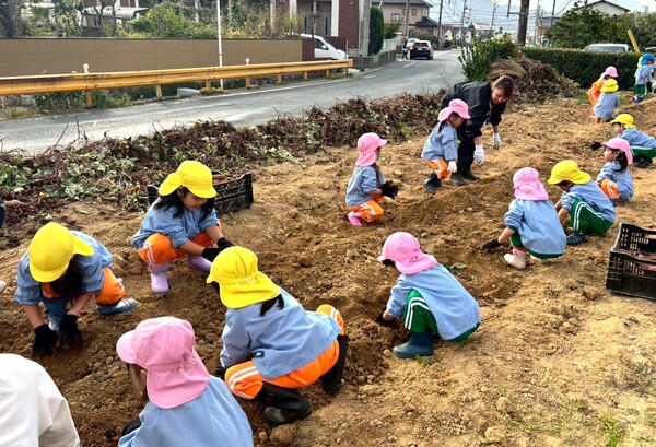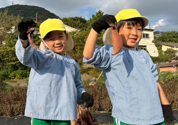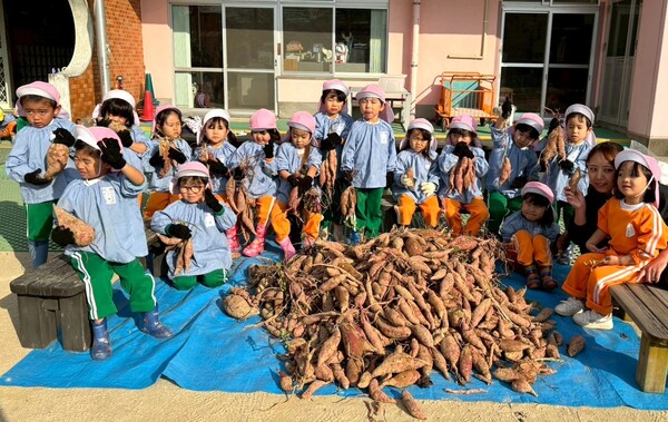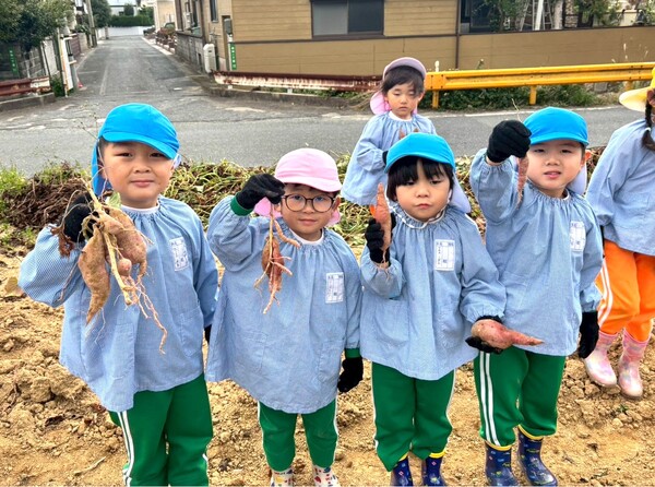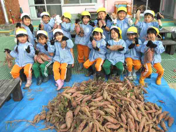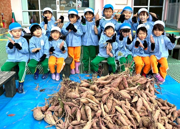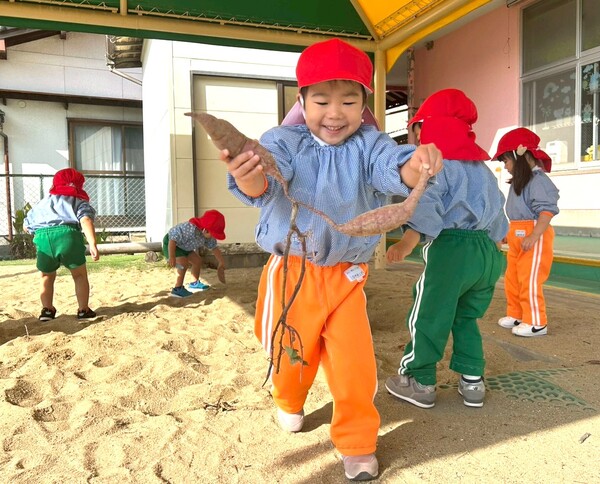 先週の金曜日に桃・青・黄組の子どもたちは芋ほりに行きました♪芋を見つけるたびに大喜びの子どもたち!収穫すると誇らしげに見せてくれましたよ☺赤上組さんたちは、保育園の砂場で芋掘りごっこをしました。「どこにあるのかな?」と芋を探して、収穫を楽しんでいましたよ♪持って帰ったお芋、おいしく召し上がれ♡