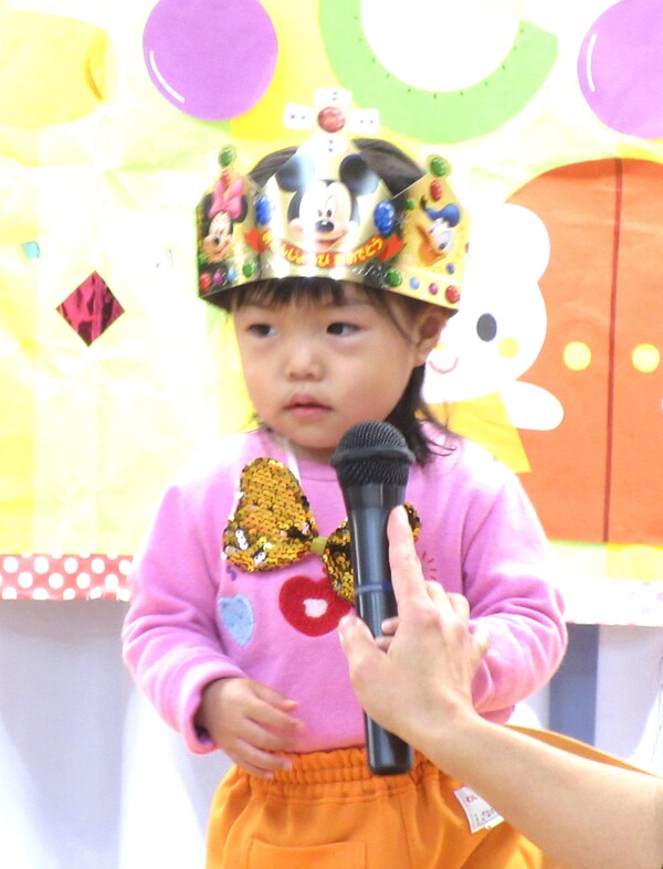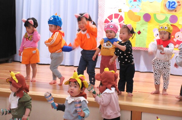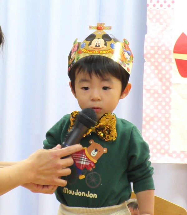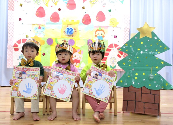 先週の19日(金)に12月の誕生日会がありました☆今月は以上児と未満児に分かれて行いました。子どもたちは緊張しつつも、自分の名前や何歳になったのかを教えてくれたり、ツリーの飾りを選んで、中に入っている質問に答えたりしました♪その後は赤組さんの発表会メドレー♪衣装を着たり、マラカスを振って、元気に踊りました☺
