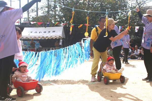 NEWS (0) 園ブログ (38) お知らせ (1) 2025/10/07 運動会がありました☆(未満児) 10月5日(日)に運動会がありました!天気にも恵まれ、初めての運動会で涙が出てしまう子もいましたが、それも大切な思い出☆1才からはかけっこに加え、親子で運動会を楽しみました♪昨年はできなかったことが今年はできるようになった姿も多く見られ、本当にかわいくて素敵な笑顔をたくさん見ることができました☺ すみれ万博2025!(赤0才) ニコニコ笑顔で走りました♪(赤1才) 親子でわんわんダンス!(赤1才) よ〜し!負けないぞ〜!(赤組) 大きな魚が釣れたよ〜♪(赤組) 1 2 3 4
