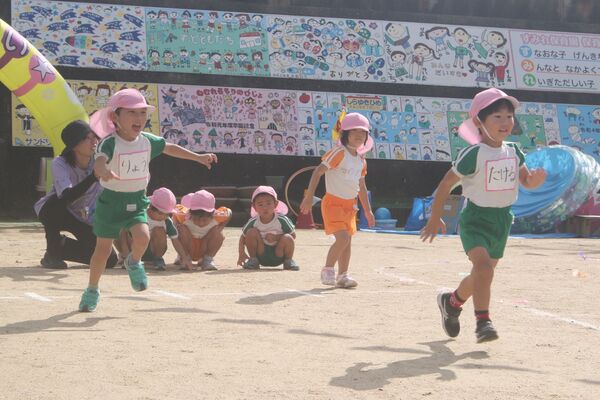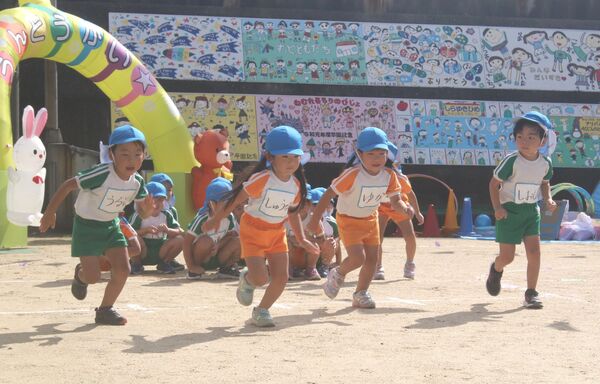 以上児の種目は一気にスピード感が増して、かけっこはあっという間にゴールテープを切ってしまいます!各クラスのリズムは、どのクラスも友だちと息を合わせ、とても感動的な瞬間を見届けることができました!保護者の皆様に見守られながら、少し緊張しつつも誇らしげな子どもたちの表情や表現に成長を感じることができました!当日までいろいろとご協力をいただき、また暑い中最後まで子どもたちの頑張りを見届けてくださり、本当にありがとうございました!おかげさまで無事に運動会を終えることができました!