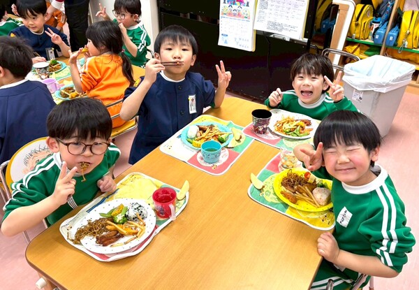 2026/03/23 お別れ会楽しかったよ☆(給食編) 出し物の後は、お楽しみの給食!お別れ会はバイキング形式で行われました!みんな自分の好きなものをおかわりして、お腹いっぱい食べました♪ お別れ会メニューおいしかったね♪ 1 2 3 4 5 6 7